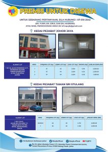 Perbadanan Usahawan Johor Sdn Bhd ( PUJB ) menawarkan premis / lot untuk disewa pada kadar yang berpatutan.